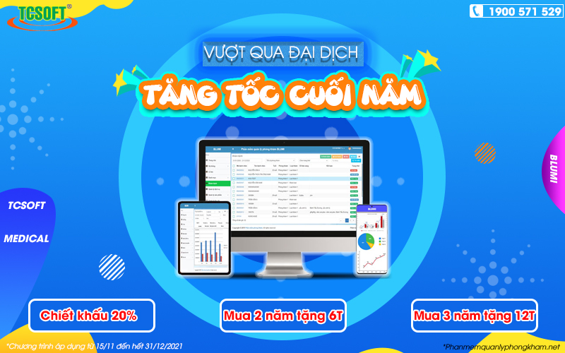 Chuyển đổi số là một trong những giải pháp tốt nhất giúp phòng khám có thể vượt qua đại dịch COVID-19 và tăng tốc doanh số cuối năm 2021. Để chủ phòng khám có thể tiếp cận các giải pháp số tốt hơn, TCSOFT tung ra chương trình ưu đãi cuối năm “VƯỢT QUA ĐẠI DỊCH – TĂNG TỐC CUỐI NĂM”.